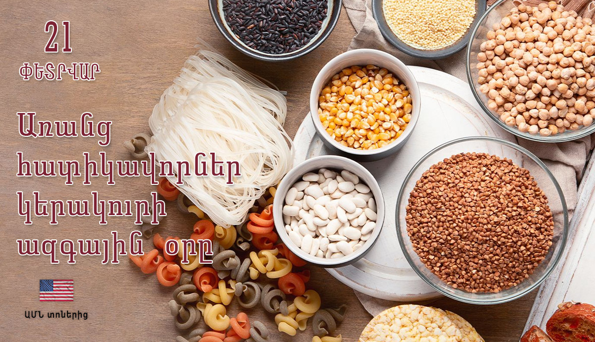 Առանց հատիկավորներ կերակուրի ազգային օրըՓետրվարի 21-ին ԱՄՆ-ում նշում են Առանց հատիկավորներ կերակուրի ազգային օրը (National Grain-Free Day) Բաժին՝ Անսովոր տոներ | Դիտումներ՝ 391 | | Ամսաթիվ՝ 21.02.2024