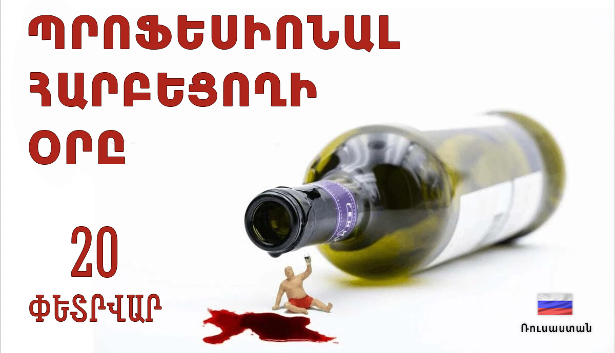 Պրոֆեսիոնալ հարբեցողի օրըՓետրվարի 20-ին Ռուսաստանում նշում են Պրոֆեսիոնալ հարբեցողի օրը Բաժին՝ Անսովոր տոներ | Դիտումներ՝ 397 | | Ամսաթիվ՝ 20.02.2024